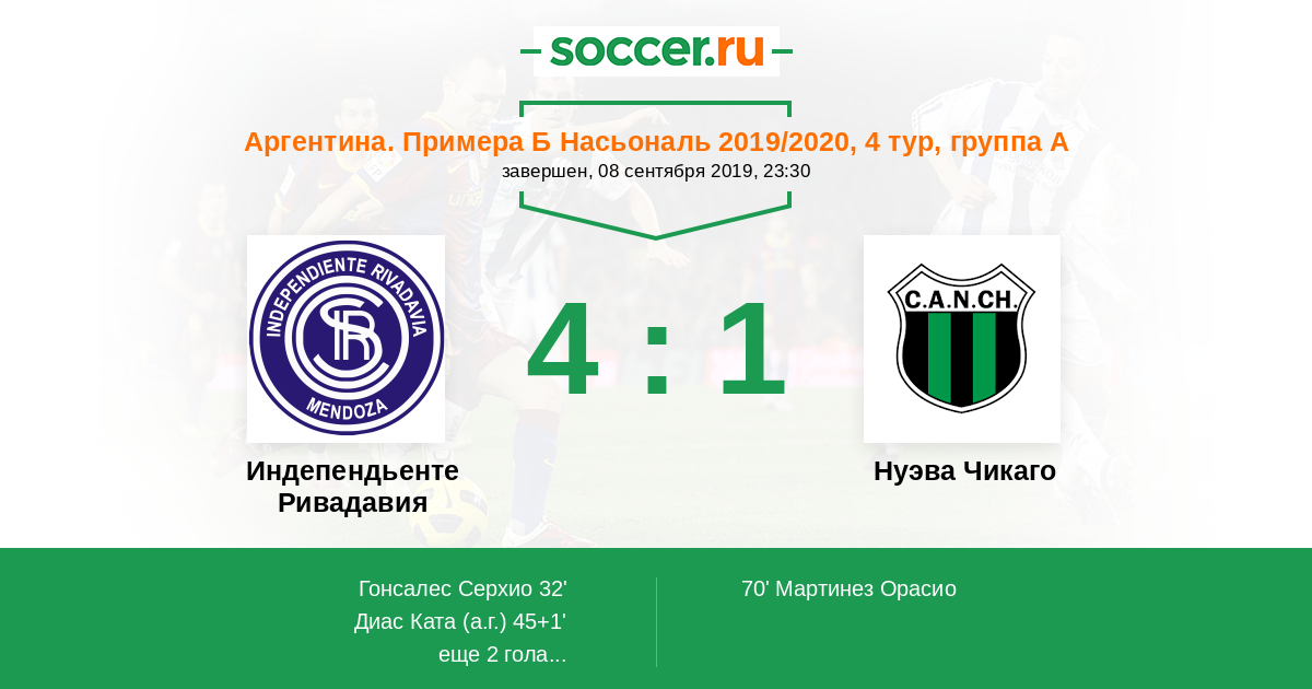 Индепендьенте Ривадавия - Нуэва Чикаго: обзор матча 8 сентября 2019