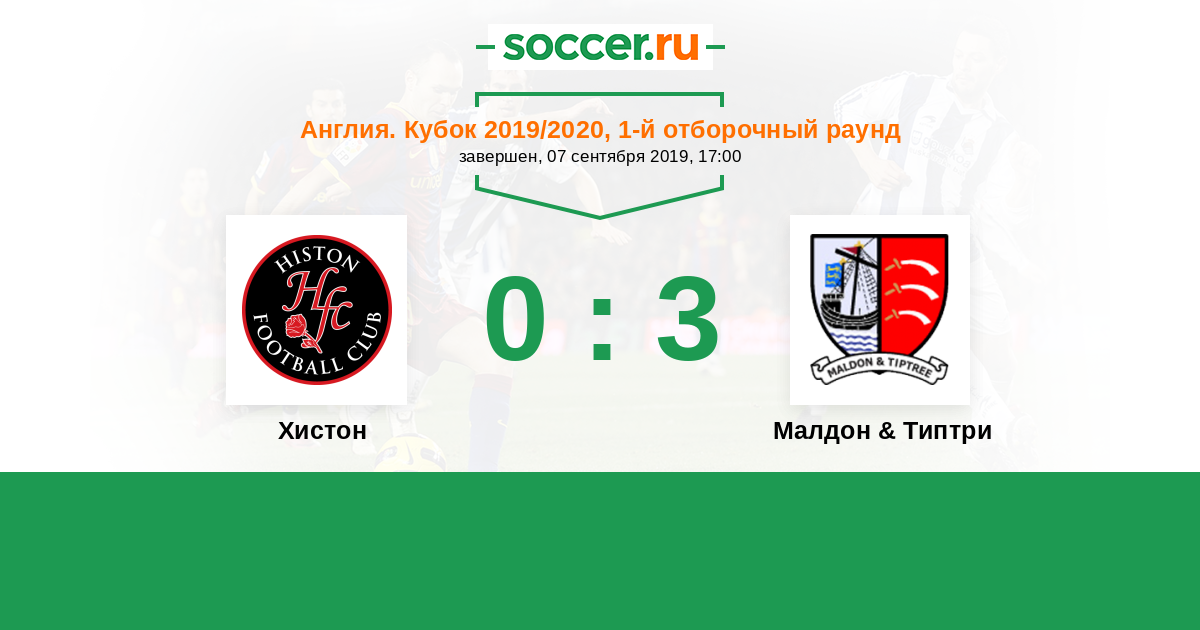 Хистон - Малдон & Типтри: обзор матча 7 сентября 2019