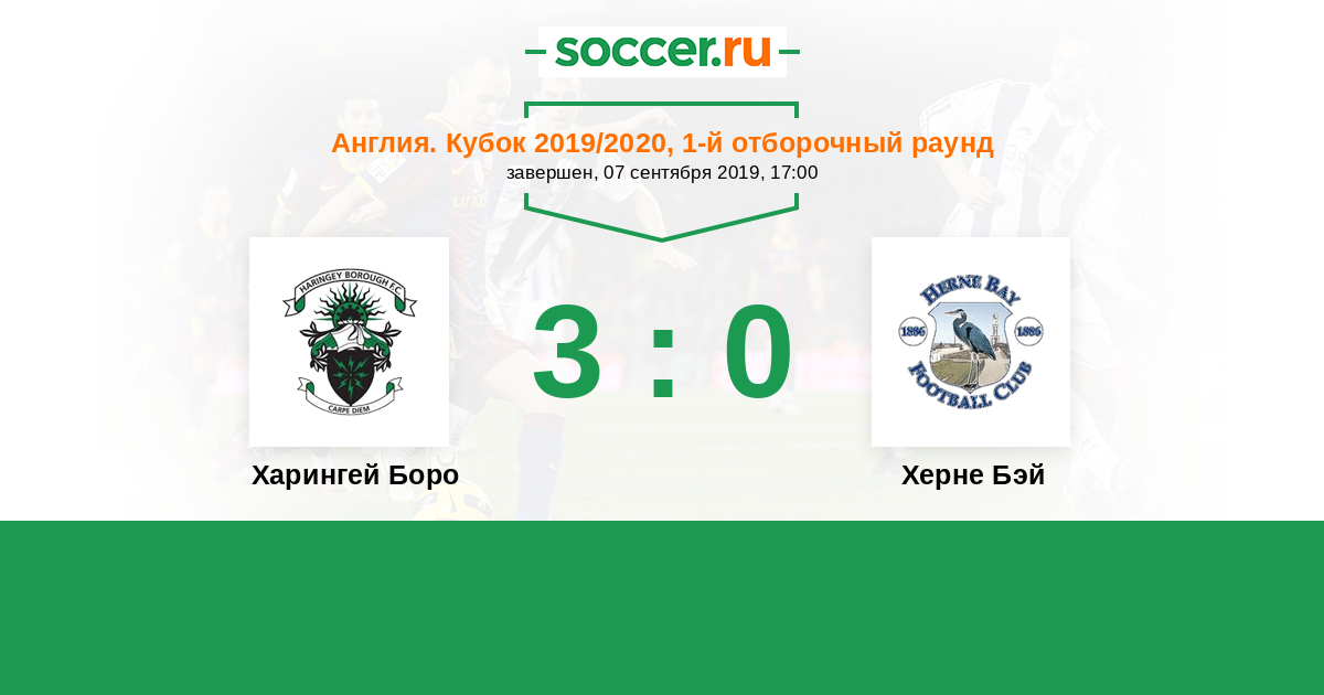 Харингей Боро - Херне Бэй: обзор матча 7 сентября 2019