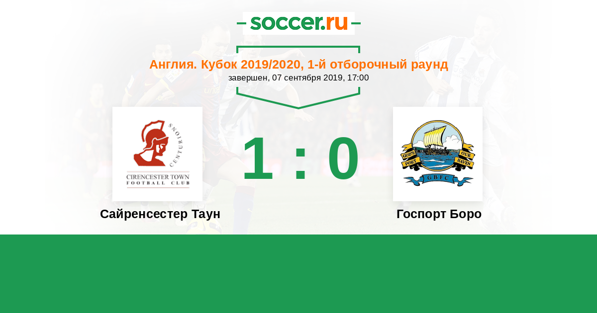 Сайренсестер Таун - Госпорт Боро: обзор матча 7 сентября 2019