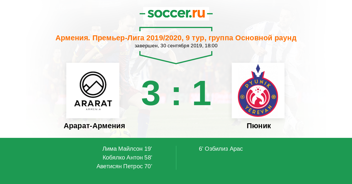 Арарат-Армения - Пюник: обзор матча 30 сентября 2019