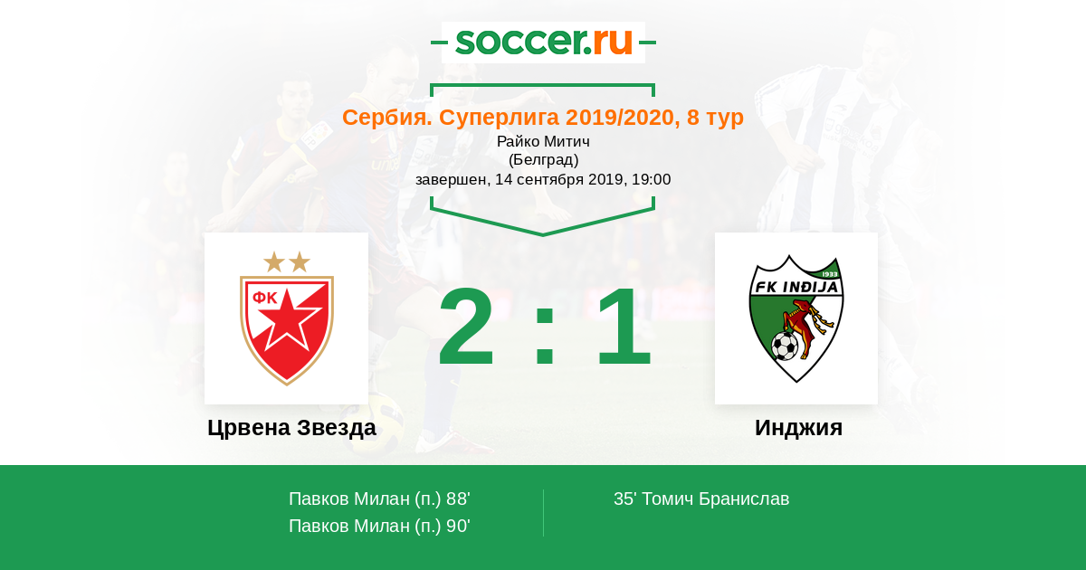 Црвена Звезда - Инджия: обзор матча 14 сентября 2019