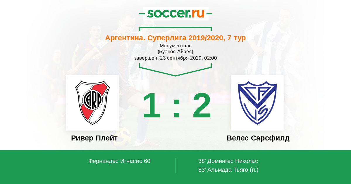 Ривер Плейт - Велес Сарсфилд: обзор матча 23 сентября 2019