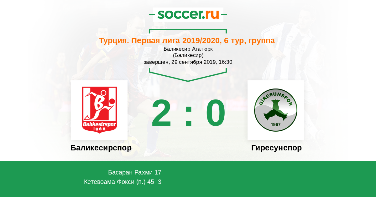 Баликесирспор - Гиресунспор: обзор матча 29 сентября 2019