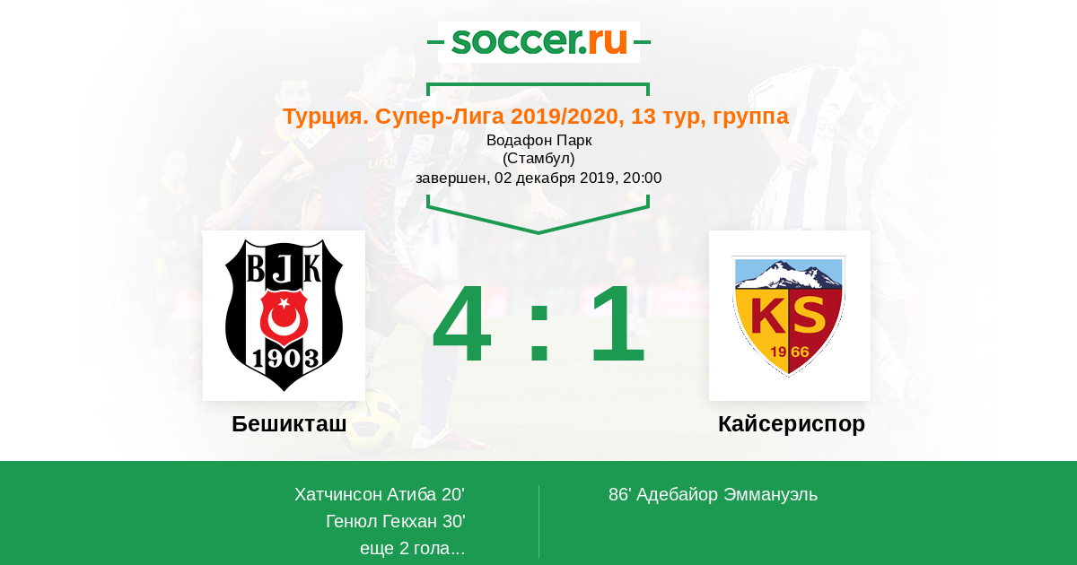 Бешикташ - Кайсериспор: обзор матча 2 декабря 2019