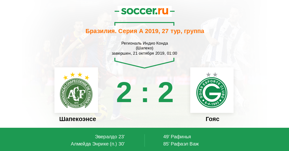 Шапекоэнсе - Гояс: обзор матча 21 октября 2019