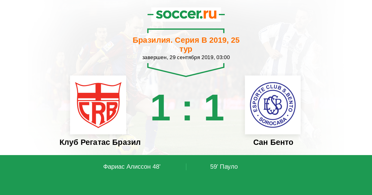 Клуб Регатас Бразил - Сан Бенто: обзор матча 29 сентября 2019