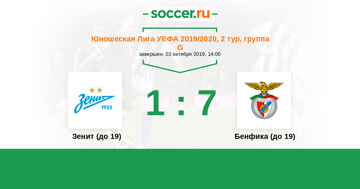 Зенит (до 19) - Бенфика (до 19): обзор матча 2 октября 2019