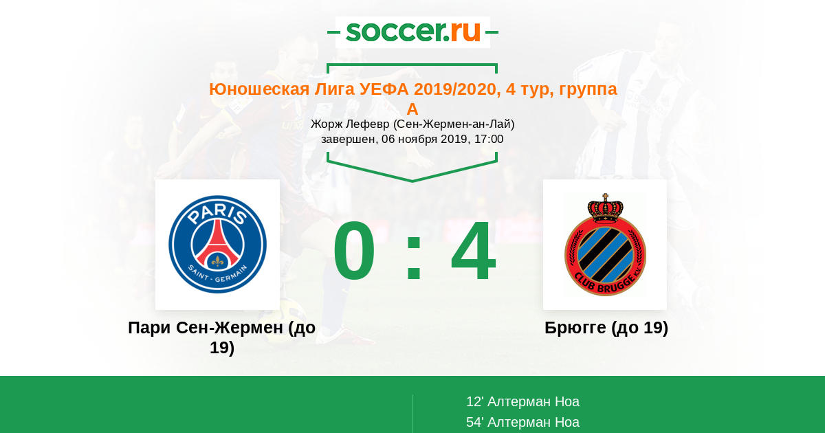 Пари Сен-Жермен (до 19) - Брюгге (до 19): обзор матча 6 ноября 2019