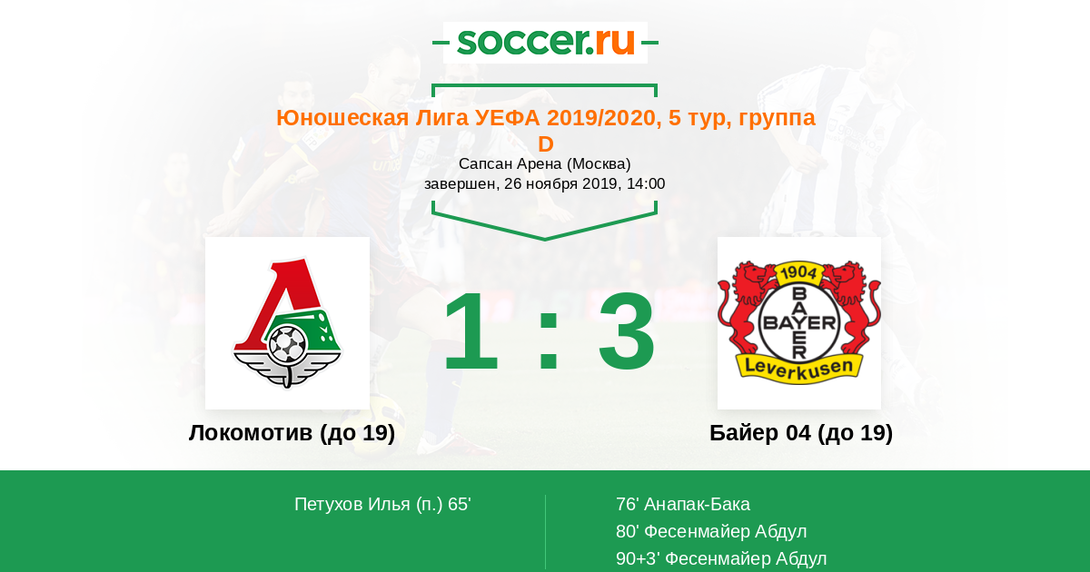 Локомотив (до 19) - Байер 04 (до 19): обзор матча 26 ноября 2019
