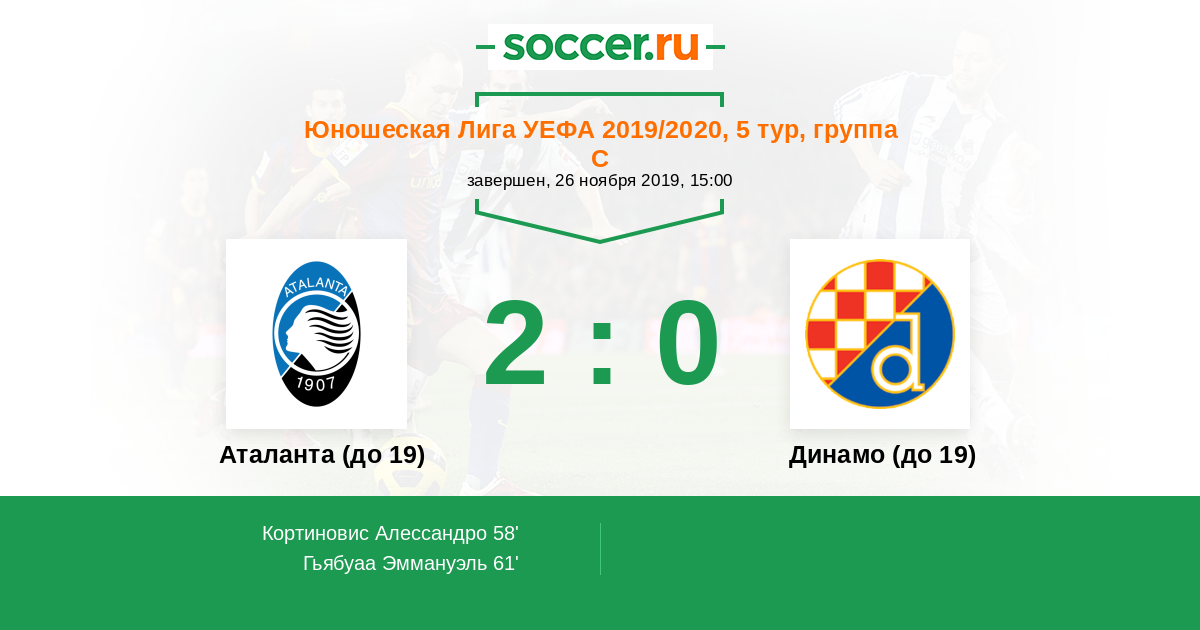 Аталанта (до 19) - Динамо (до 19): обзор матча 26 ноября 2019