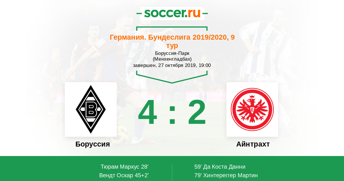 Боруссия - Айнтрахт: обзор матча 27 октября 2019