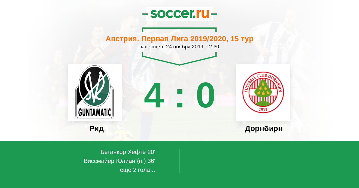 Рид - Дорнбирн: обзор матча 24 ноября 2019