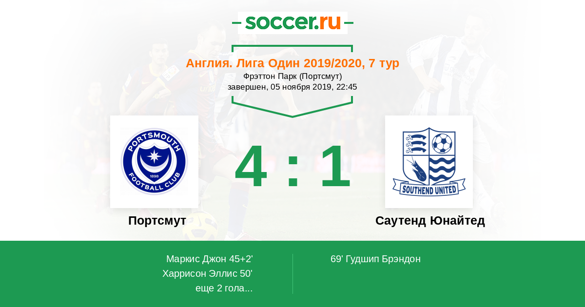 Портсмут - Саутенд Юнайтед: обзор матча 5 ноября 2019