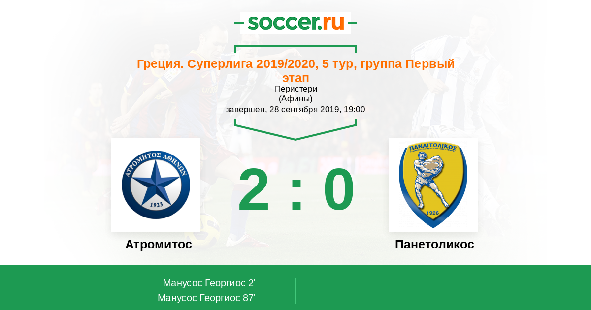 Атромитос - Панетоликос: обзор матча 28 сентября 2019