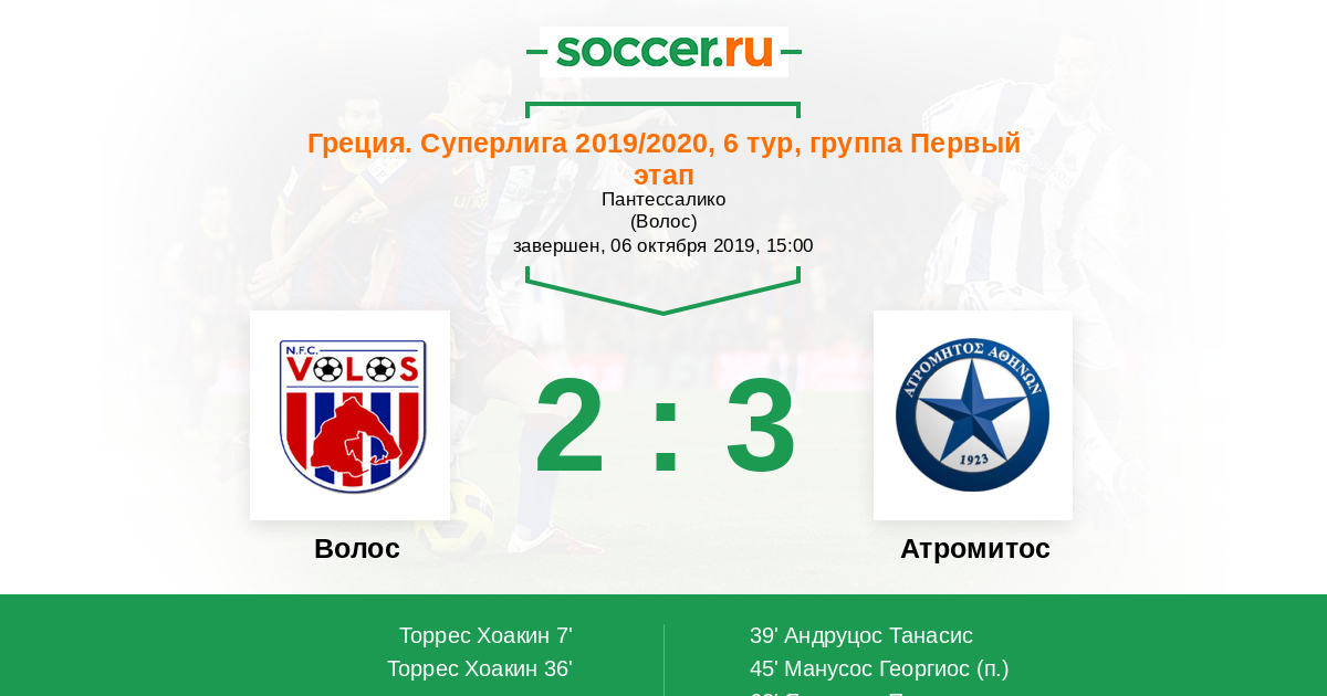 Волос - Атромитос: обзор матча 6 октября 2019