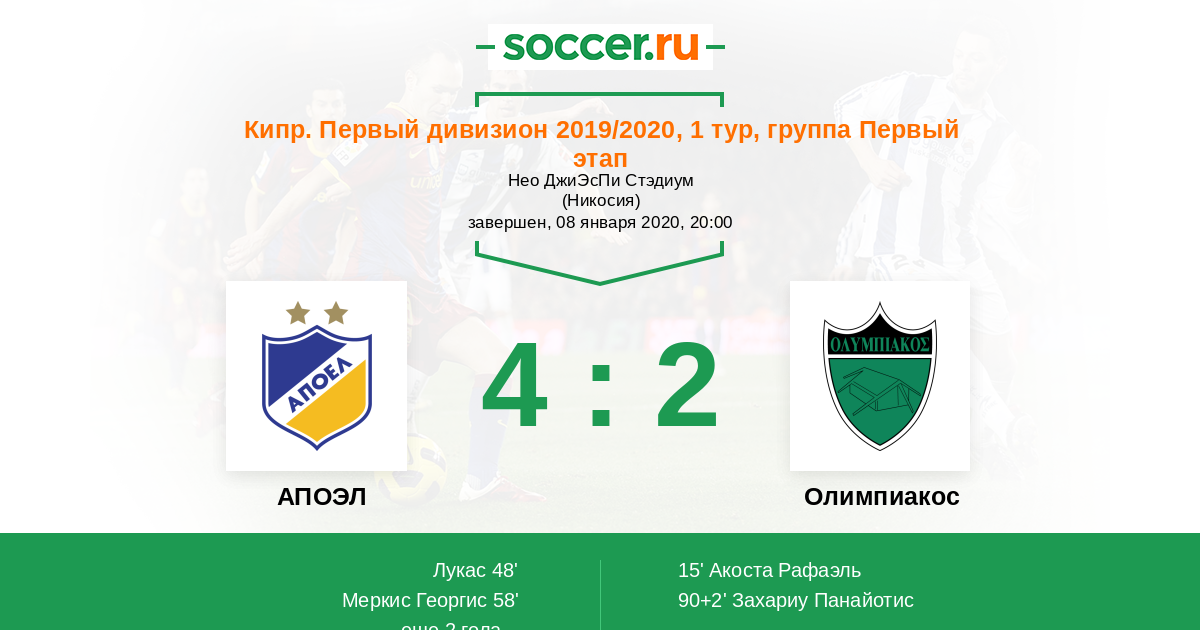 АПОЭЛ - Олимпиакос: обзор матча 8 января 2020