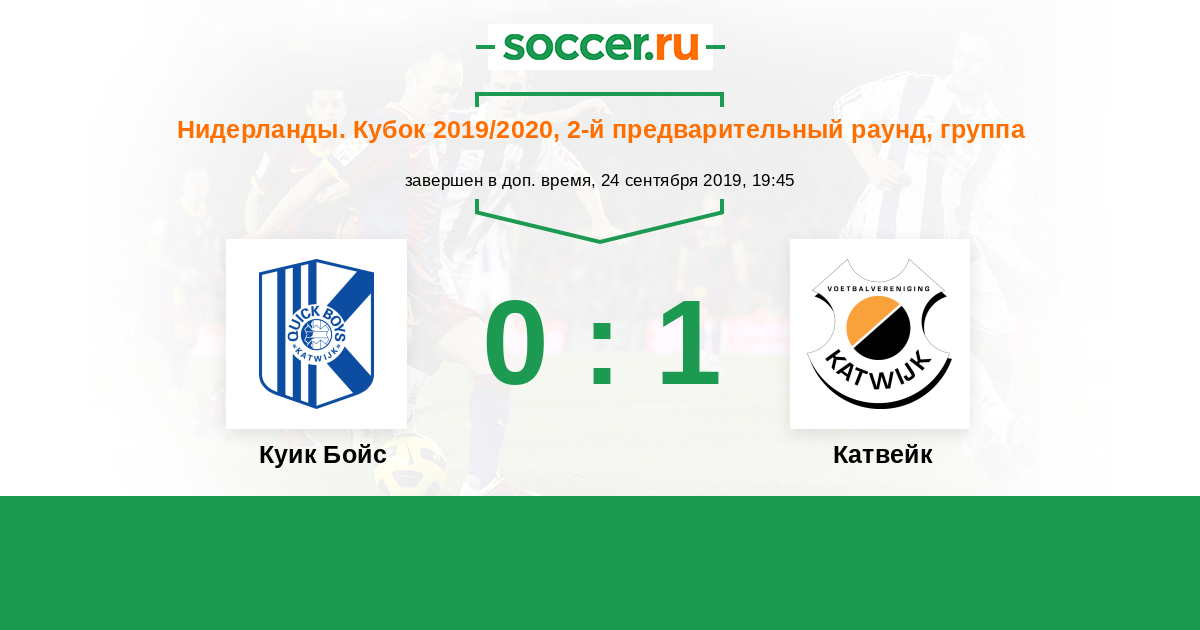 Куик Бойс - Катвейк: обзор матча 24 сентября 2019