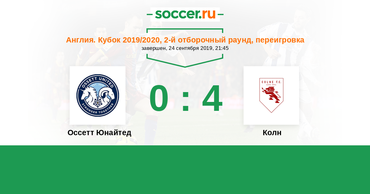 Оссетт Юнайтед - Колн: обзор матча 24 сентября 2019