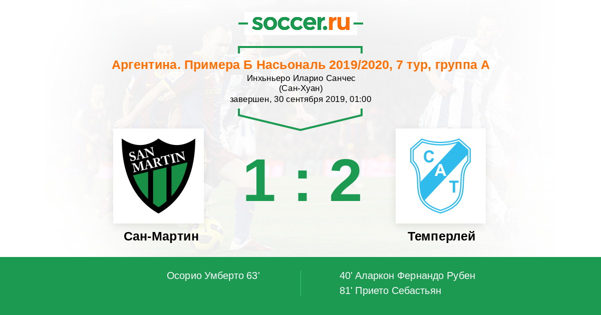 Сан-Мартин - Темперлей: обзор матча 30 сентября 2019
