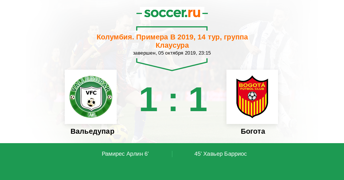Вальедупар - Богота: обзор матча 5 октября 2019