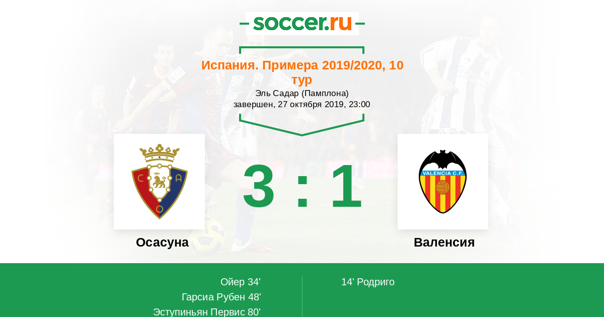 Осасуна - Валенсия: обзор матча 27 октября 2019