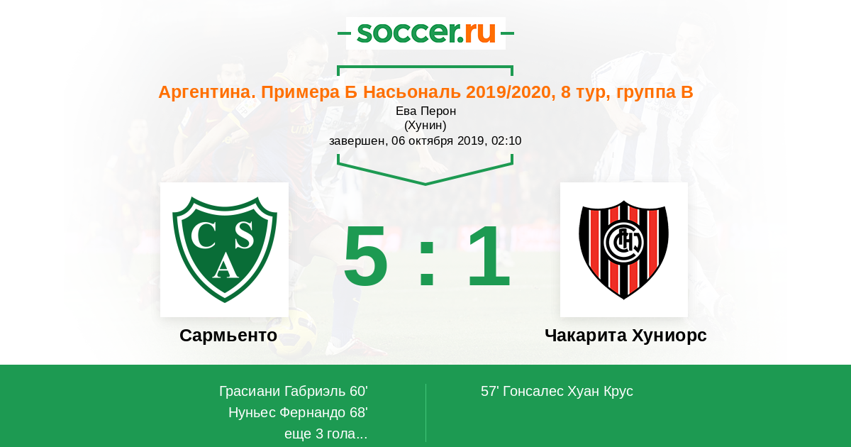 Сармьенто - Чакарита Хуниорс: обзор матча 6 октября 2019