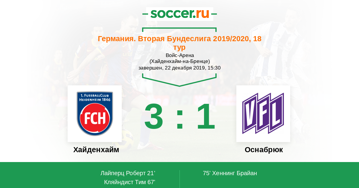 Хайденхайм - Оснабрюк: обзор матча 22 декабря 2019