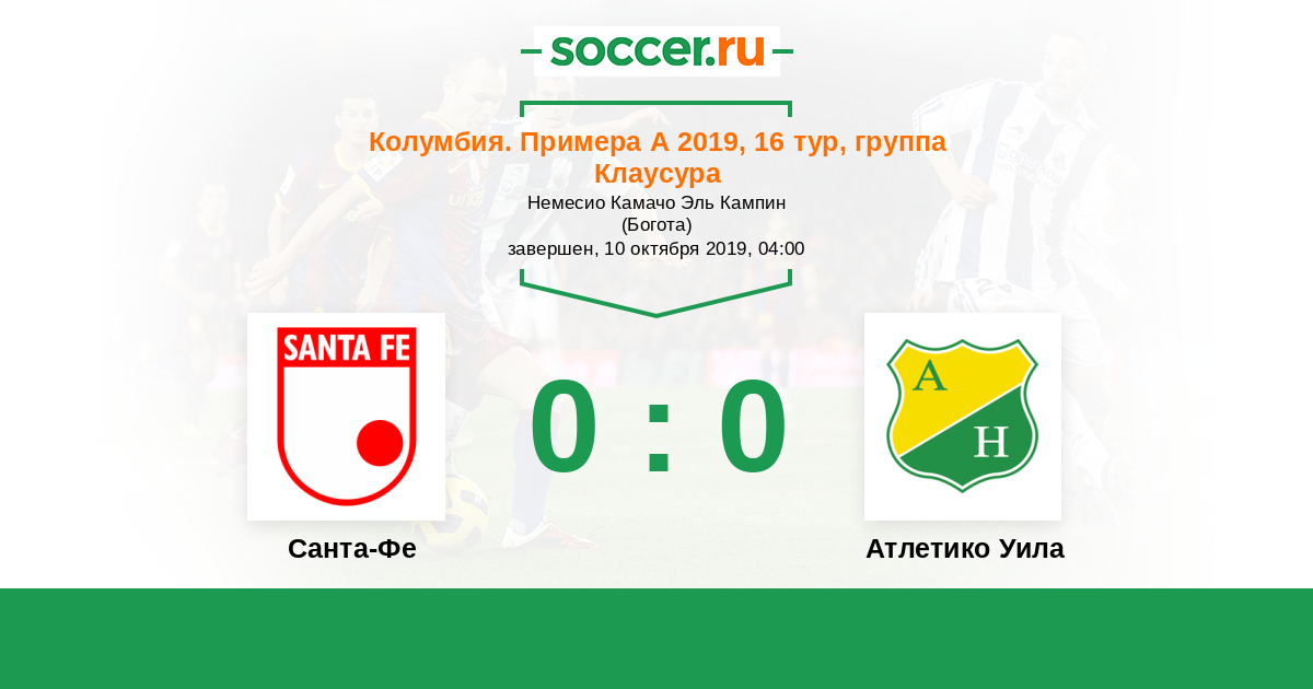 Санта-Фе - Атлетико Уила: обзор матча 10 октября 2019