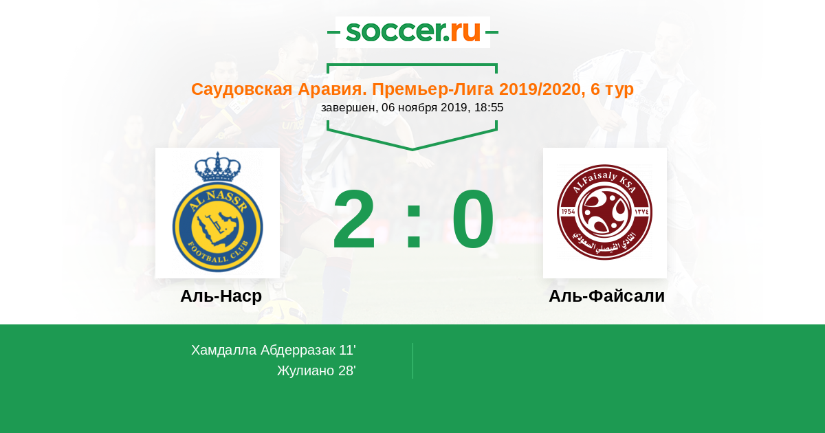 Аль-Наср - Аль-Файсали: обзор матча 6 ноября 2019