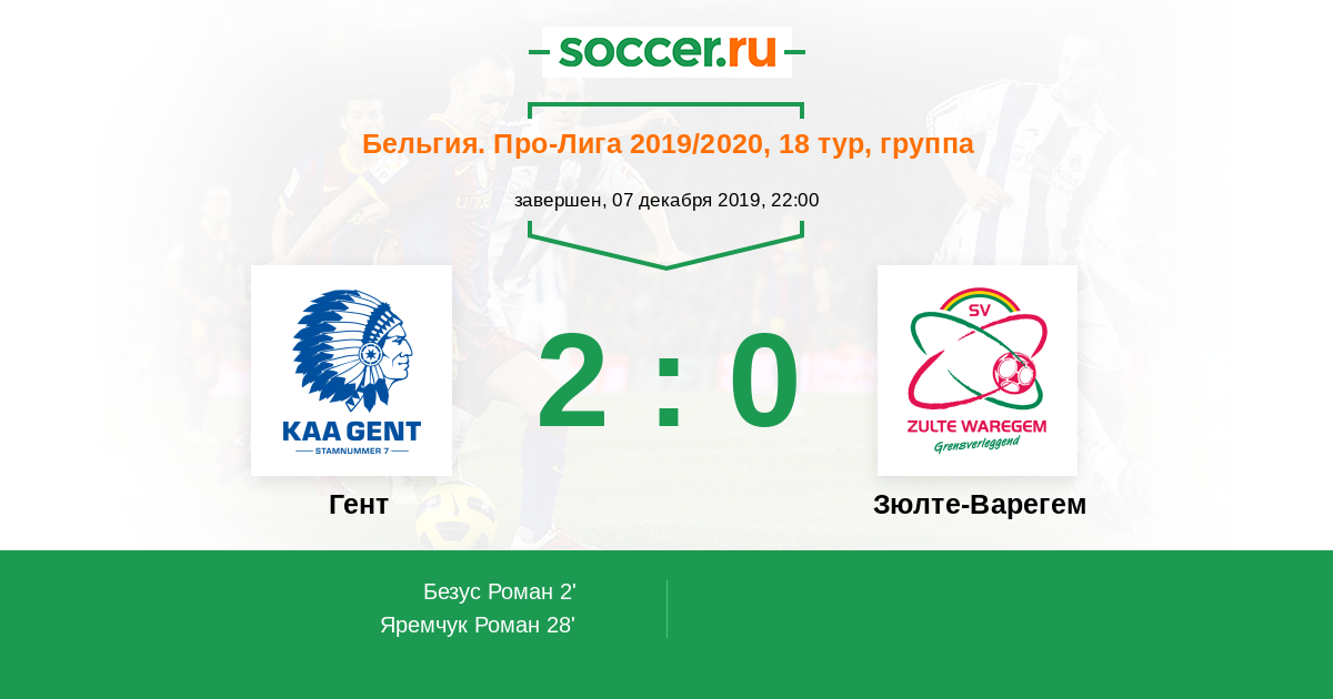 Гент - Зюлте-Варегем: обзор матча 7 декабря 2019