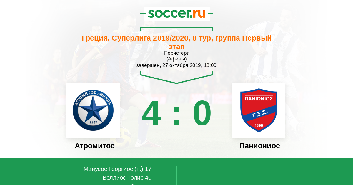 Атромитос - Паниониос: обзор матча 27 октября 2019
