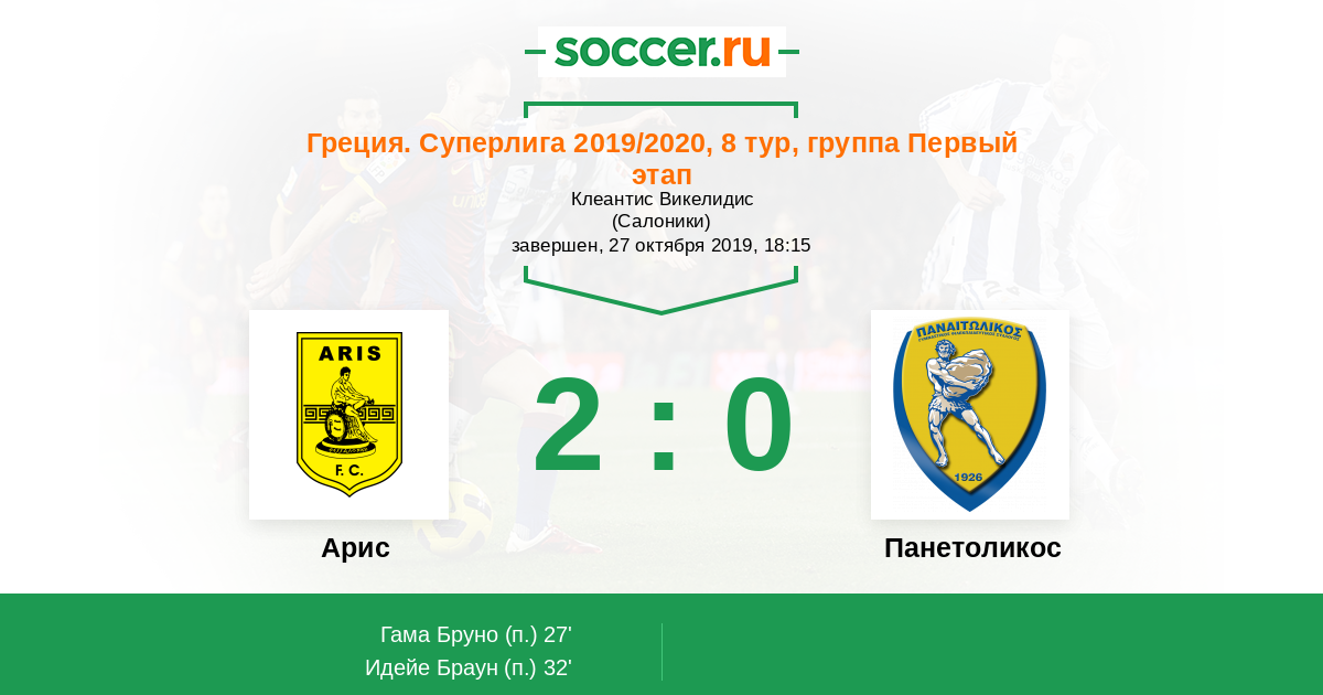 Арис - Панетоликос: обзор матча 27 октября 2019