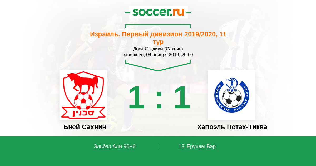Бней Сахнин - Хапоэль Петах-Тиква: обзор матча 4 ноября 2019