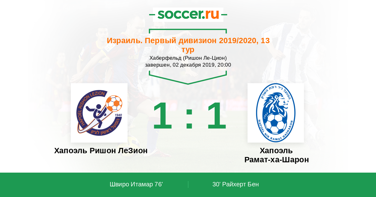 Хапоэль Ришон ЛеЗион - Хапоэль Рамат-ха-Шарон: обзор матча 2 декабря 2019