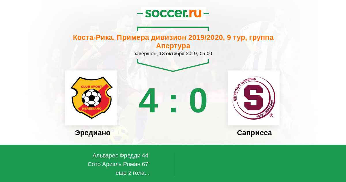 Эредиано - Саприсса: обзор матча 13 октября 2019