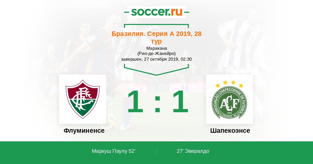 52' ГолЛоготип ФлуминенсеМаркуш Паулу (32, н) (Логотип ФлуминенсеДаниэлзиньо (20, п)) - 1:1