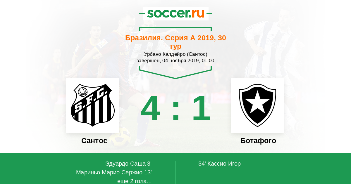 Сантос - Ботафого: обзор матча 4 ноября 2019