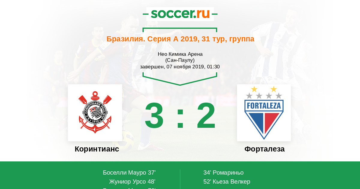 Коринтианс - Форталеза: обзор матча 7 ноября 2019