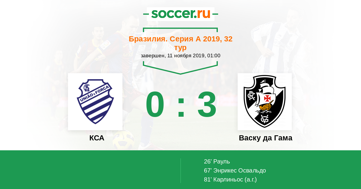 КСА - Васку да Гама: обзор матча 11 ноября 2019