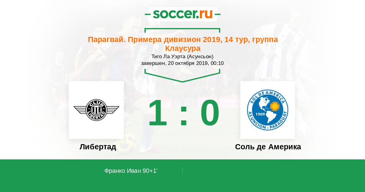 Либертад - Соль де Америка: обзор матча 20 октября 2019