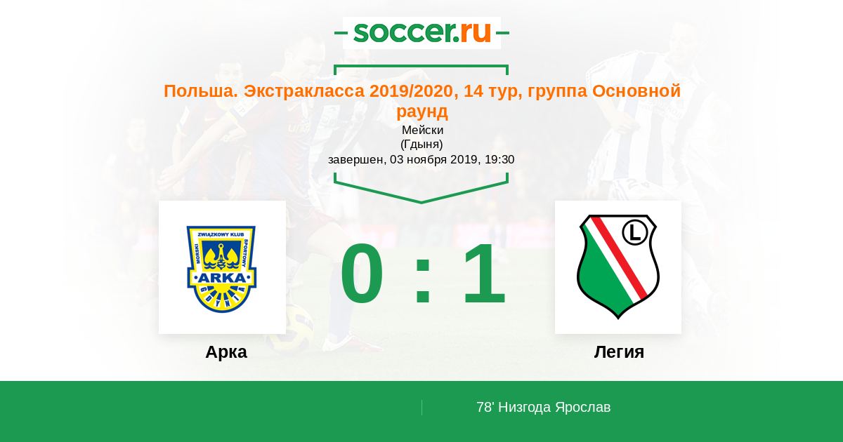 Арка - Легия: обзор матча 3 ноября 2019