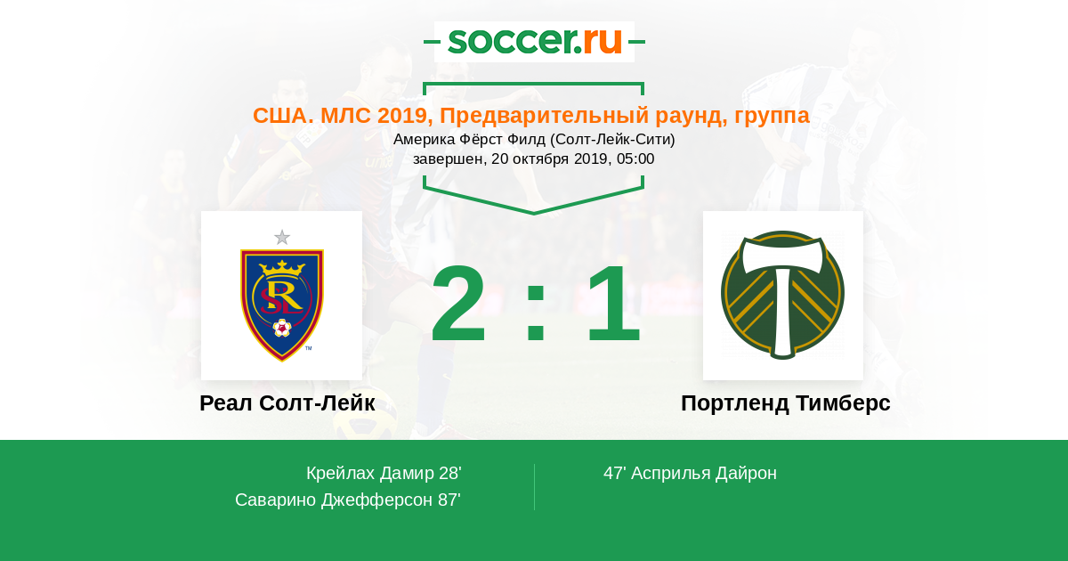 Реал Солт-Лейк - Портленд Тимберс: обзор матча 20 октября 2019