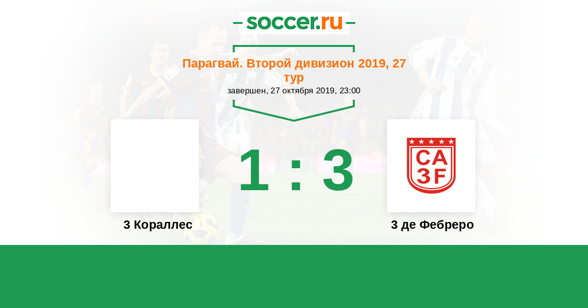 3 Кораллес - 3 де Фебреро: обзор матча 27 октября 2019