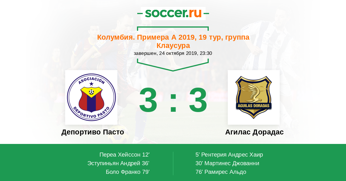 Депортиво Пасто - Агилас Дорадас: обзор матча 24 октября 2019
