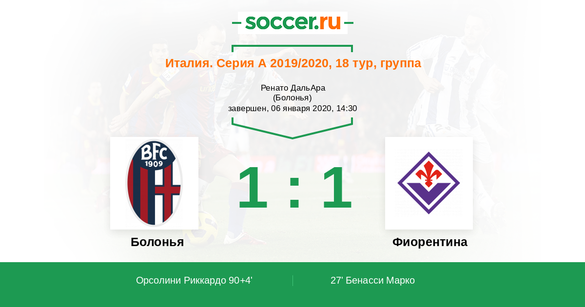 Болонья - Фиорентина: обзор матча 6 января 2020