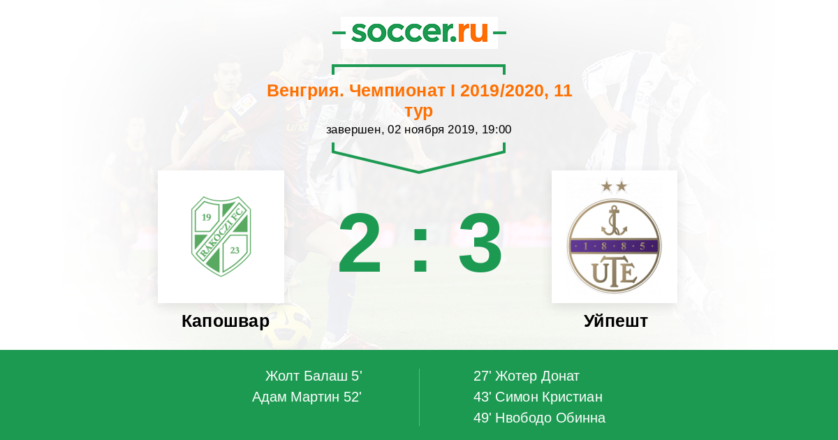 Капошвар - Уйпешт: обзор матча 2 ноября 2019