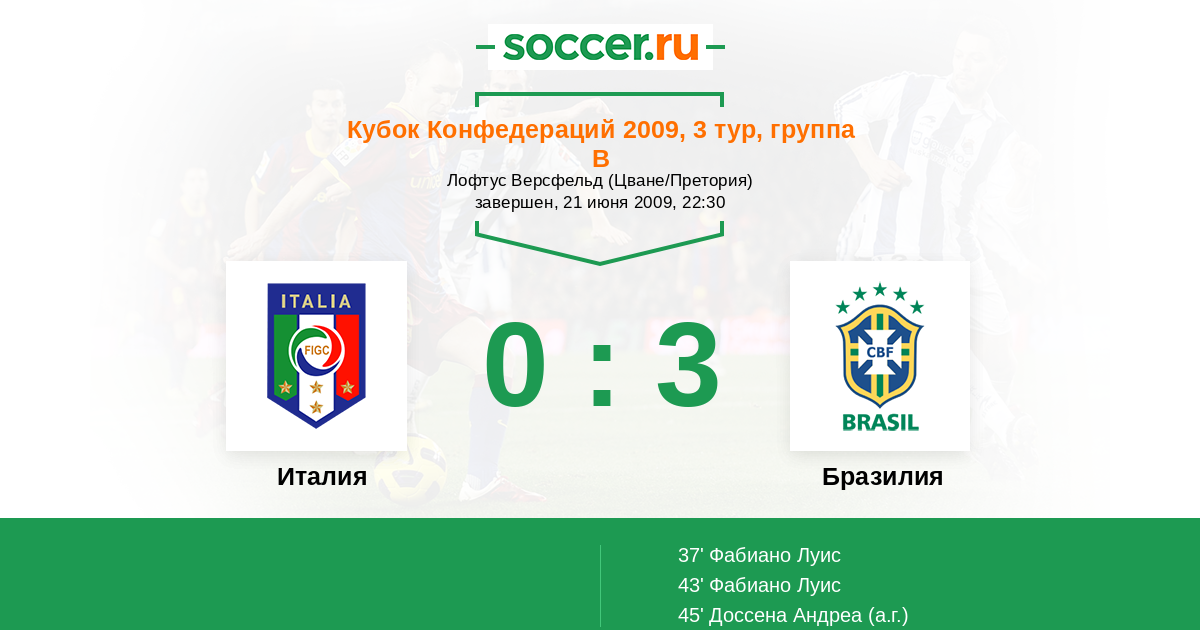 Италия - Бразилия: обзор матча 21 июня 2009