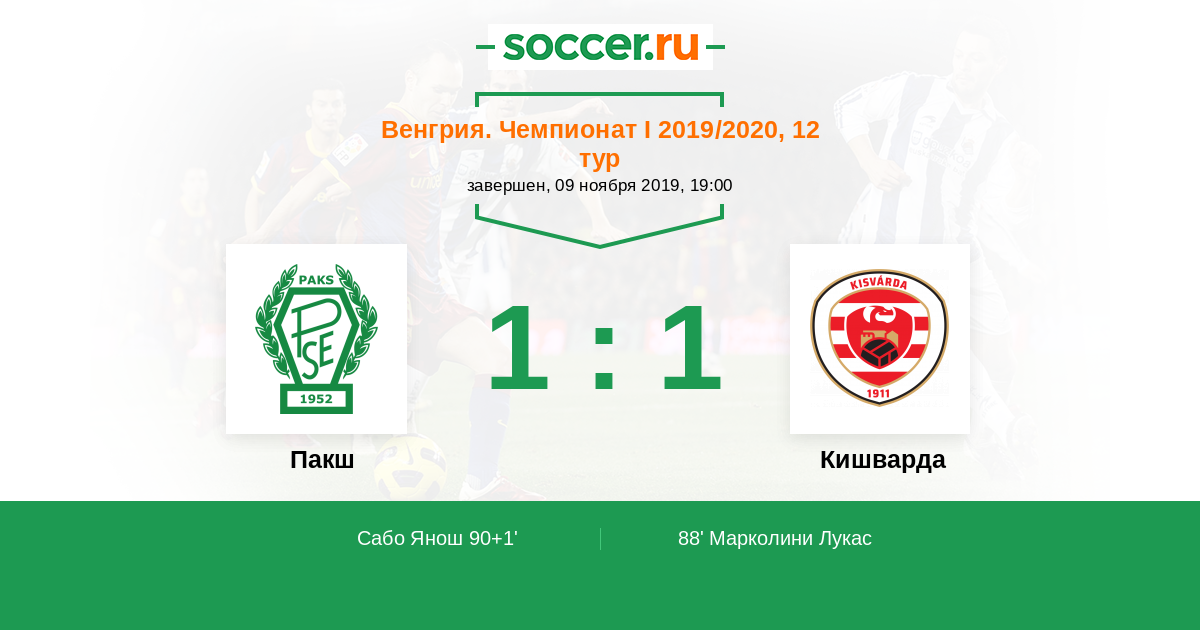Пакш - Кишварда: обзор матча 9 ноября 2019
