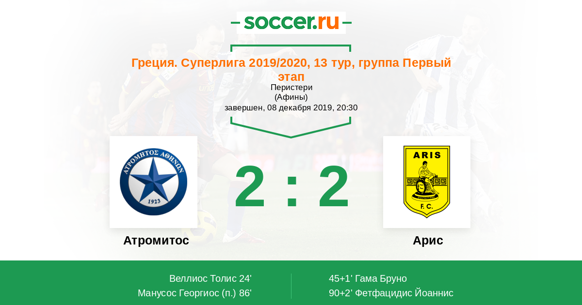 Атромитос - Арис: обзор матча 8 декабря 2019